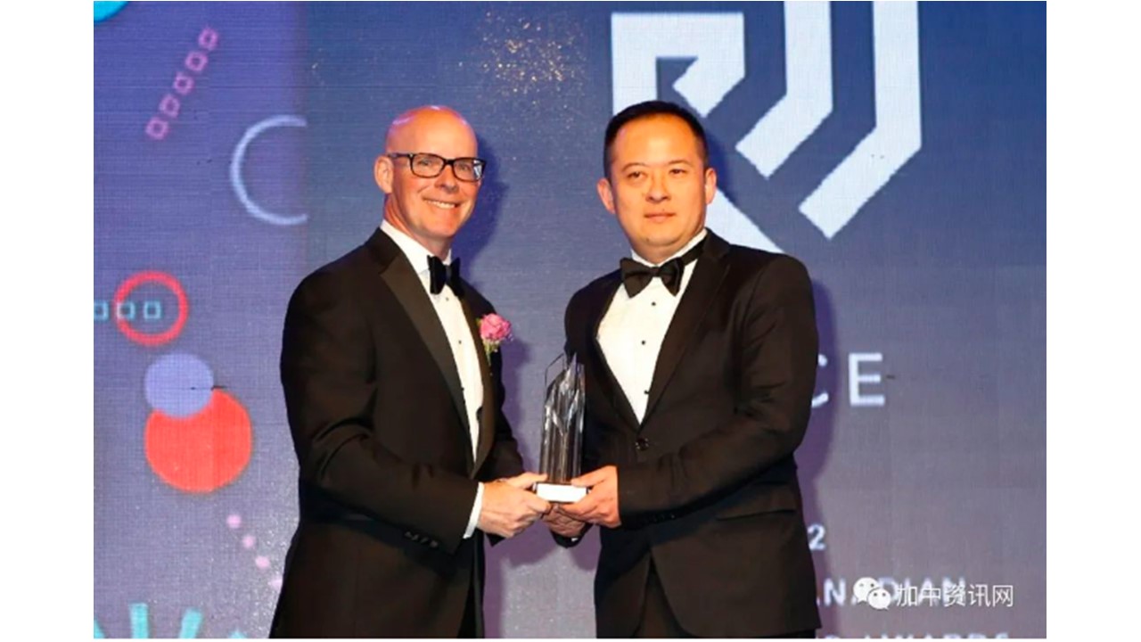 加拿大豐業銀行多倫多地區高級副總裁Scott Gamble頒發「最佳企業進步獎」給陸晨麒