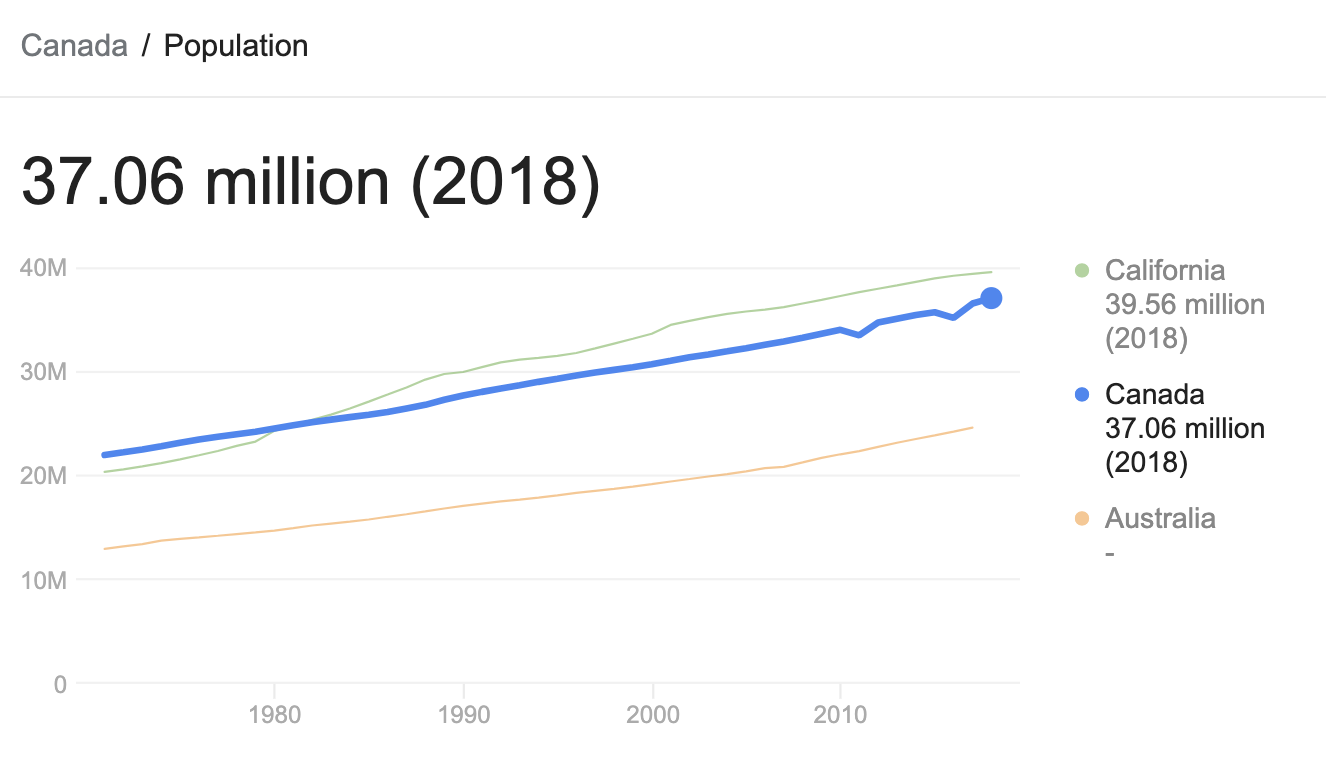 加拿大统计局有数据显示,近年来人口增长迅速,2000年时还是3070万人,2018年就变成了3710万人。而疯狂涌入的新移民是主要的人口增长来源。