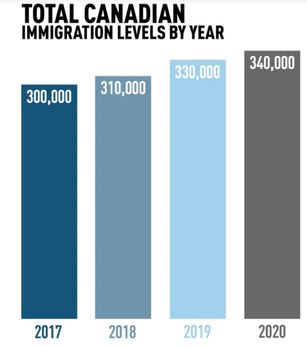 长期而言,房地产市场是一种人口现象,受人口增减和流动迁徙的影响巨大。据加拿大统计局的数字,2018年新移民占全国人口增长总数的80.5%。按照2017年加拿大政府制定的相关移民引进计划,2019年加拿大移民人数将达到33万人,明年将会达到34万人。