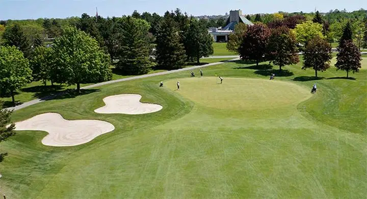 另一個著名球場是在Angus Glen社區內的York Downs Golf & Country Club,這個有80年歷史的高爾夫球場占地400英畝,有27洞場地,同Mississauga 的多倫多高爾夫球俱樂部齊名。該球場最大的特點是,這個球場的會員可以隨時進場打球,而不必預定時間。