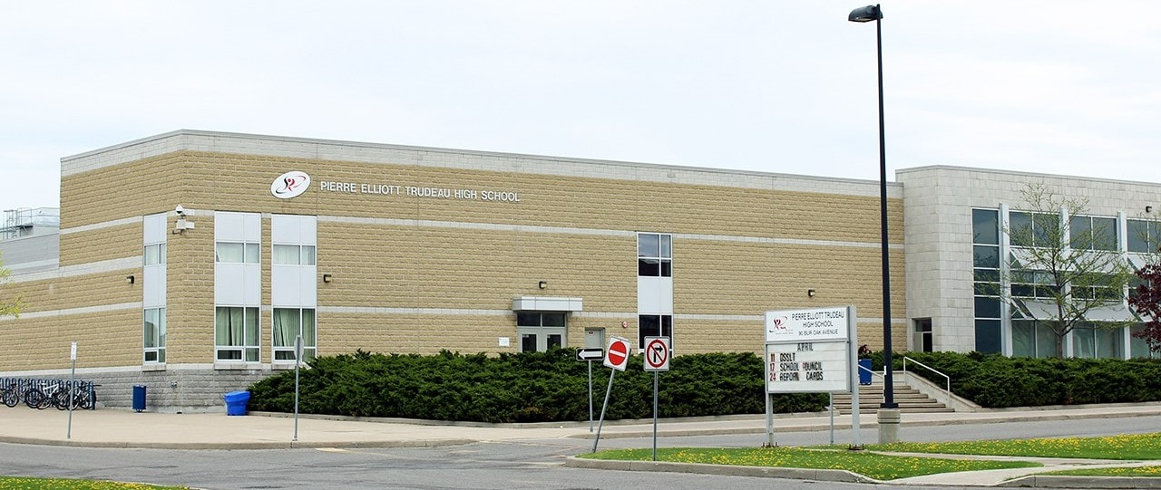而高中部Pierre Elliott Trudeau High School (PET高中),2019菲沙排名9/625,是以前总理名字命名的一所英法双语学校。2001年建校时就聘请了多伦多著名高中- Bayview Secondary School的很多资深老师们,教學水平高。学校提供了很多AP课程的科目,如数学,科学,法语,英语和历史。此外,Pierre Elliott Trudeau High School现在额外提供了一个专业的高技能商科主修,转型成为商学为主的高中。