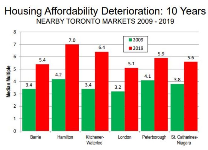 排名所依据的“中位数倍数”(Median Multiple)也从侧面体现出,多伦多平均房价和居民平均收入之间巨大悬殊的差距。