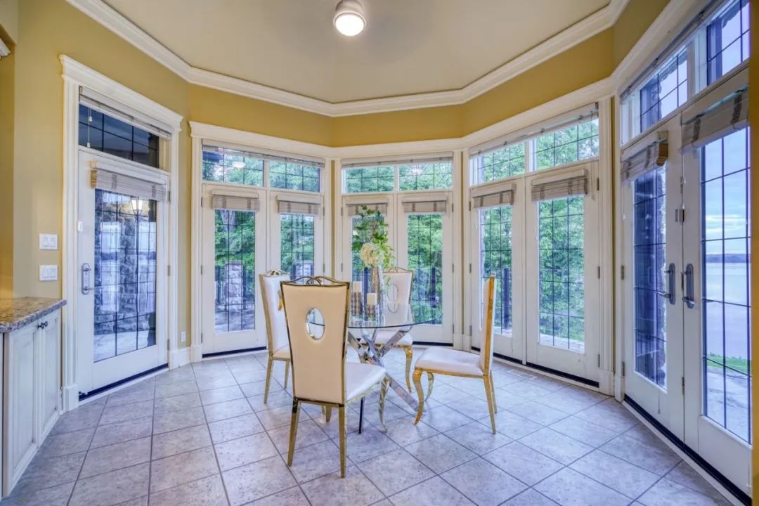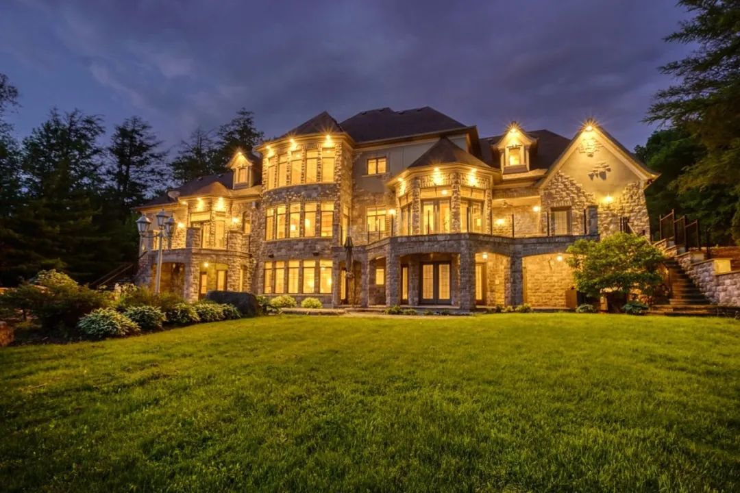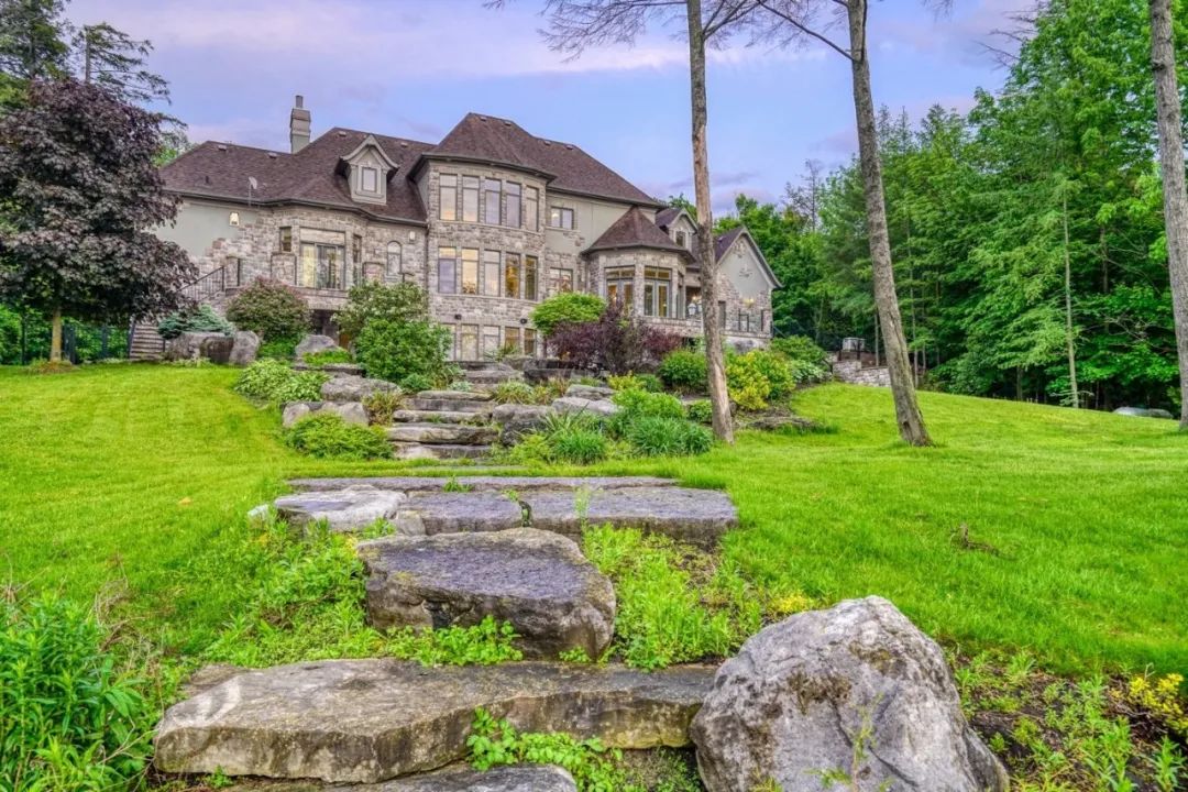 从后花园拾阶而下就是私家的码头和游艇停泊的地方。有水的地方就有灵气,Scugog湖沿岸风景如画,青草绿树,鸟语花香。从后花园私家码头看回去,整个建筑就是三层像城堡式的建筑。霞光祥云,尊贵大气。这样的富丽堂皇,值得人生赢家的你拥有。后花园青草盈盈,绿树苍天。当夜幕降临,后院的泳池和按摩热池,都回归于寂静。只有那摇曳的烛火,温暖的壁炉,晶莹的灯光守候着,如童话世界。