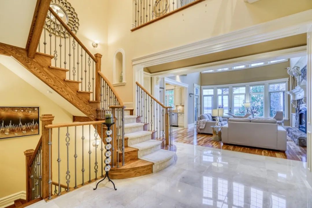 大门口的两尊石狮,栩栩如生,内敛不张扬。左右各一把守着大门。经过雕刻师们的精心奉献,保护着主人的健康和财富。从大门而入,穿过门厅,首先映入眼帘的就是20尺挑高的大厅,非常气派。上下两层的窗户让整个屋子通透敞亮,一下就把你的视野延伸到窗外那一波碧水。无论是喜欢端坐在洒下大片阳光的沙发里阅读沉思,还是喜欢驻足在窗前赏花观湖,又或者几个知心朋友一起品赏咖啡,畅聊人生。动静自如,在这里你都能找到最适合的姿态和最惬意的心情。