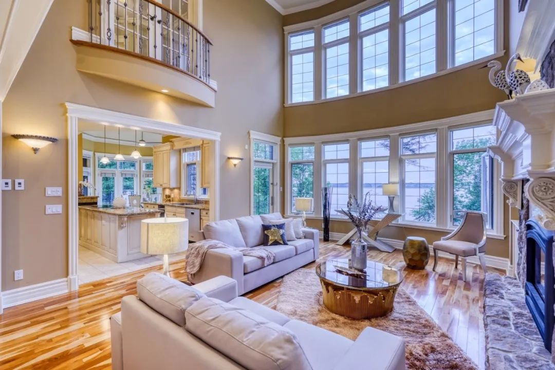 曾经,多伦多一位非常有名的医生,为了和自己的妻子共筑爱巢,享受世外桃源般的幸福生活,千方百计的寻找一个理想家园。一天黄昏,当他们来到Lake Scugog 东岸这个最美丽的湖边社区时,一下子被这里的自然宁静和美丽风光所打动,于是重金邀请著名的希腊建筑师乔治·洛洛斯和建筑大师里克·朗多量身定制,于2004年打造了这栋伟大的豪华别墅。