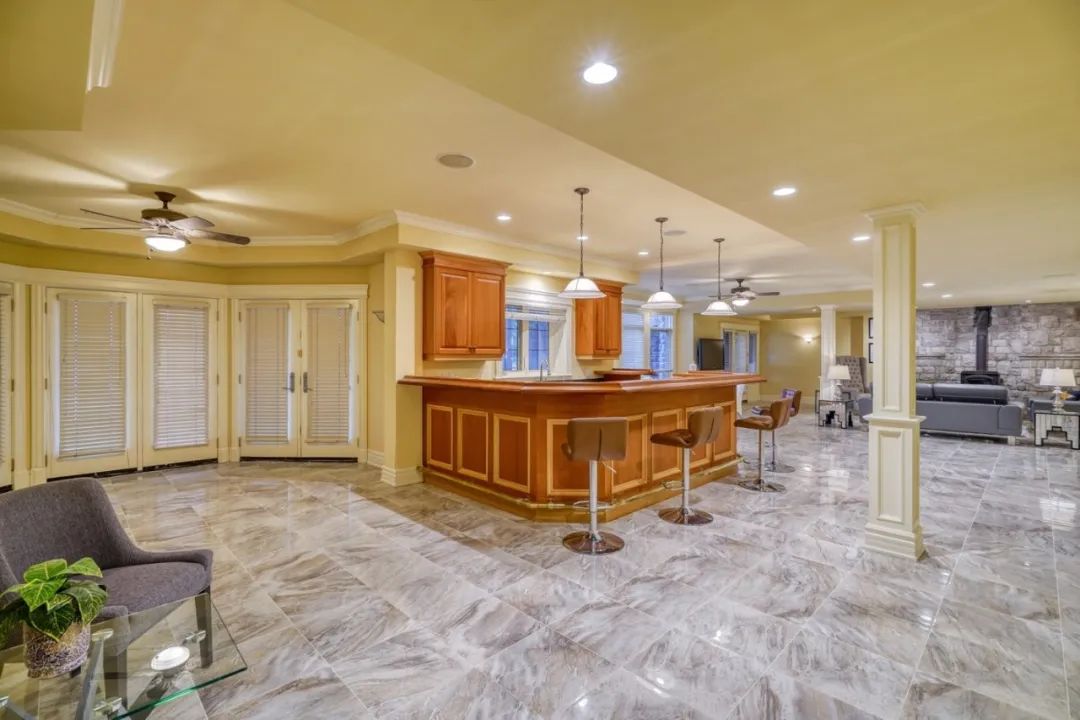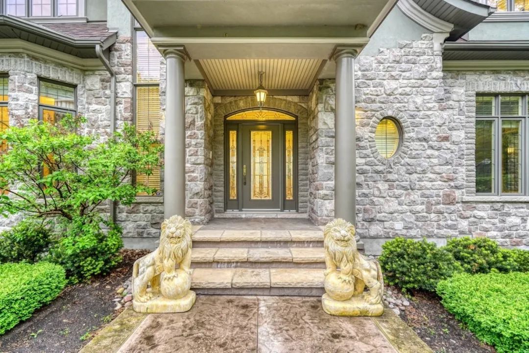 这栋豪华别墅位于湖边最安静的AmblesideDr.路上,6车库的欧式城堡设计风格(现业主把其中3个车库改建成了娱乐室),依水而建,后院湖边私人水岸线长达200英尺,设有私人码头,停泊自家的豪华游艇。古典式的城堡外观,专业设计的园林园艺,独树一帜,浑身闪耀着不同凡响的贵族气质。别墅距离Port Perry小镇仅4分钟车程,交通和生活设施都非常方便。该别墅占地1.07英亩(约为4330平方米),居住面积达7300平方尺。