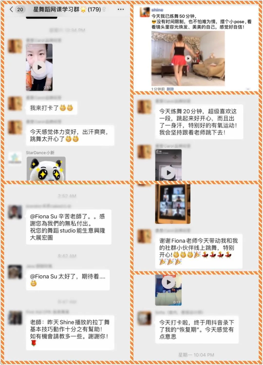 从今年3月至今,星舞蹈已经开设了15节免费网络课程,教学范围包括了国标拉丁舞,Salsa莎莎,Bachata 巴恰塔 ,Hip Pop街舞,芭蕾,Jazz Funk,北美排舞,精致塑形和有氧燃脂课。