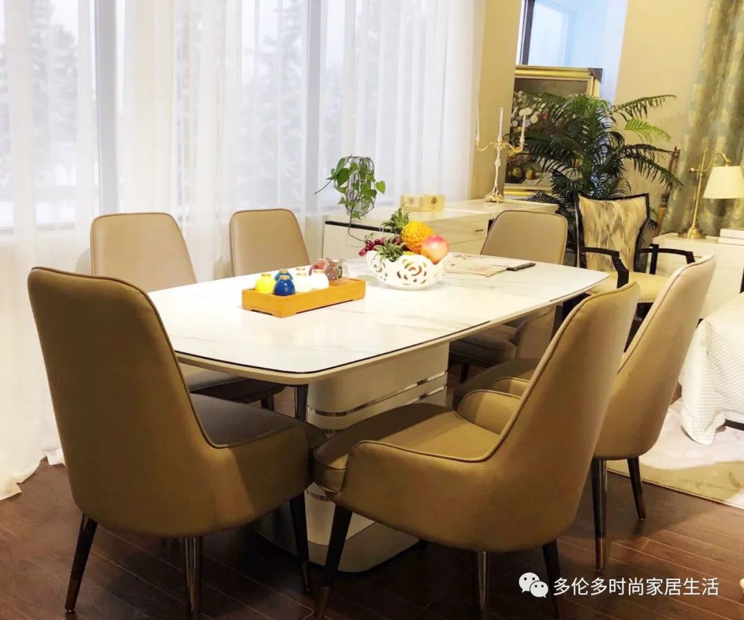 这一款现代轻奢实木系列双门酒柜与前面两款餐桌搭配相得益彰。还有最后一款同系列四门酒柜,如果有足够位置摆放,也是很好的选择。