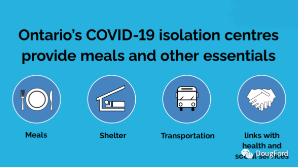 新冠隔离中心可为民众提供全方位支持和服务。具体而言,隔离者可享餐饮、安保、交通以及卫生和社会服务。在未来数个星期内,省府将为全省提供1525张床位,用于安全隔离。其中,杜林区可有125张,皮尔区最多840张,多伦多最多280张,约克区最多280张。