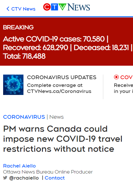 1月19日,加拿大总理特鲁多提到了来自其他国家确认的COVID-19新毒株正在不断升级、发生难以预测的变化,强烈要求加拿大人不要出国旅行,因为加拿大联邦政府的旅行规定可能很快就会改变。