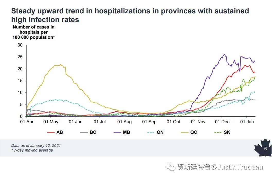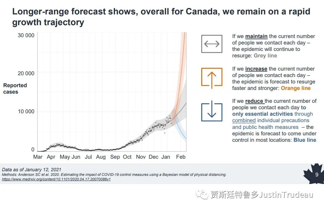 加中资讯网2021年1月20日讯,特鲁多总理疫情通报指出:每日新增病例于12月末以来迅速上升!从数据模拟显示:未来几周可能快速扩散趋势!希望所有加拿大人减少接触机会,增加快速检测筛查,保障疫苗接种!