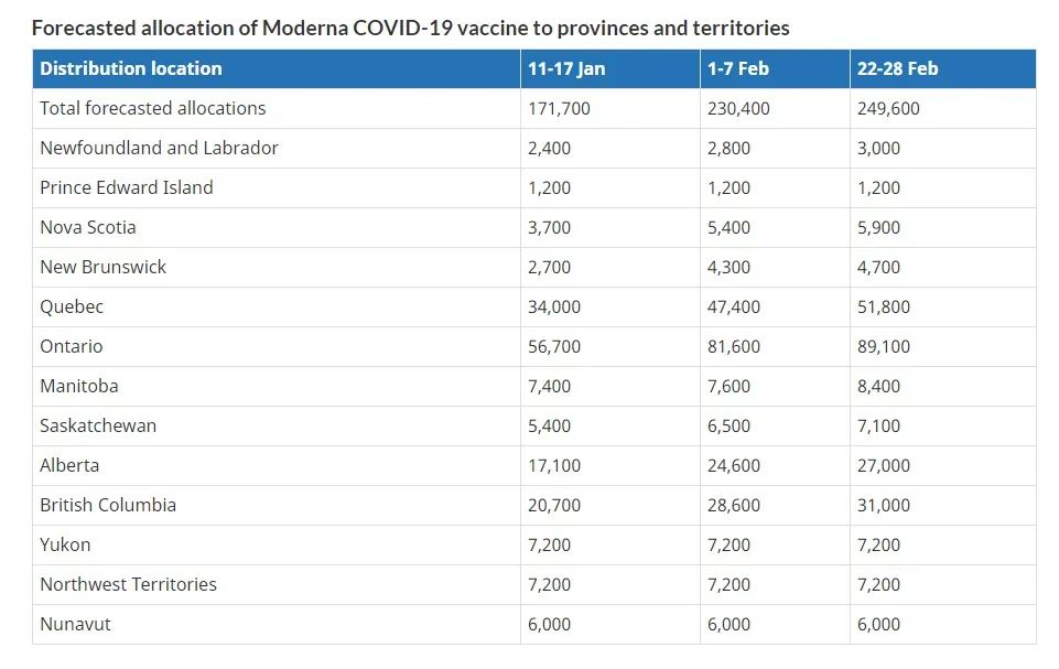 我们已通知各省和地区从现在起到2月底的每一周要获得多少数量的疫苗——我们还将继续努力,以尽最快的速度提供更多疫苗。
