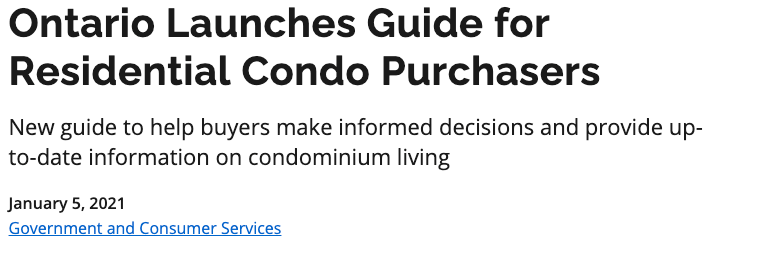 以帮助公寓买家做出明智的购买决定,安省政府发布了新的《住宅公寓买家指南》(Residential Condominium Buyers' Guide),从2021年1月1日开始,全省房地产开发商将被要求向购买新condo的或住宅公寓楼花(pre-construction residential condo)的购买者提供指南和披露当前声明的副本。