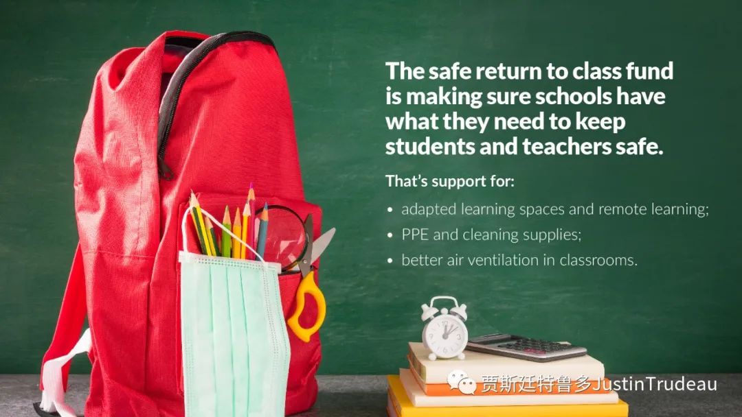 “学校对于孩子的学习能力和成长至关重要。我们必须确保我们的孩子们能够在一个安全的环境中学习,并确保老师们的职场安全。我们联邦政府将继续确保各省和地区可以根据公共卫生建议做出决策,而不是受制于预算限制。值此前所未有的学年中,我们各方在共同努力,守护学生、教师、员工和家庭的健康和安全。”