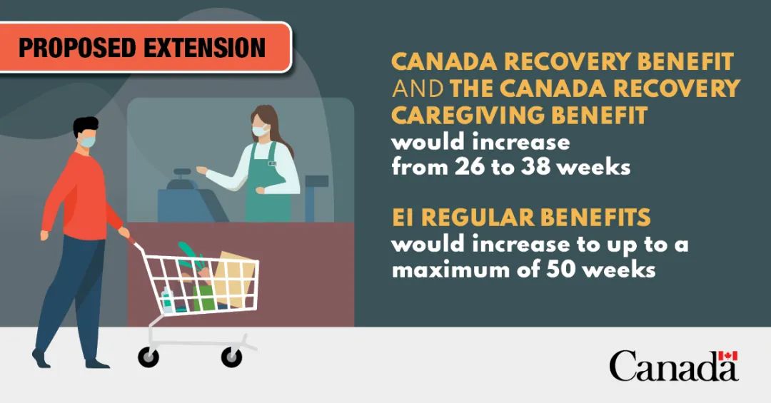 将加拿大复苏补助(Canada Recovery Benefit , CRB)和加拿大复苏看护补助(Canada Recovery Caregiving Benefit , CRCB)下的可用周数增加12周,从而在法规上将最长的补助期从26周延长至38周;