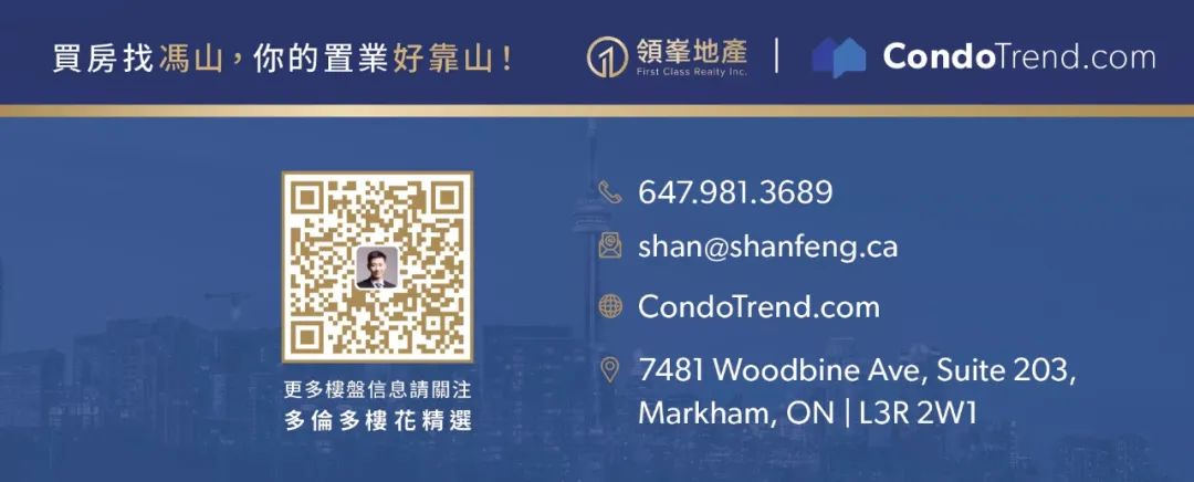详情请联系多伦多楼花销售冠军冯山,您的置业好靠山!更多资讯、更优价格、更好楼盘!请联系:647-806-8188(国,粤,英皆可)更多详情,请联系微信: fengshanxiaohao