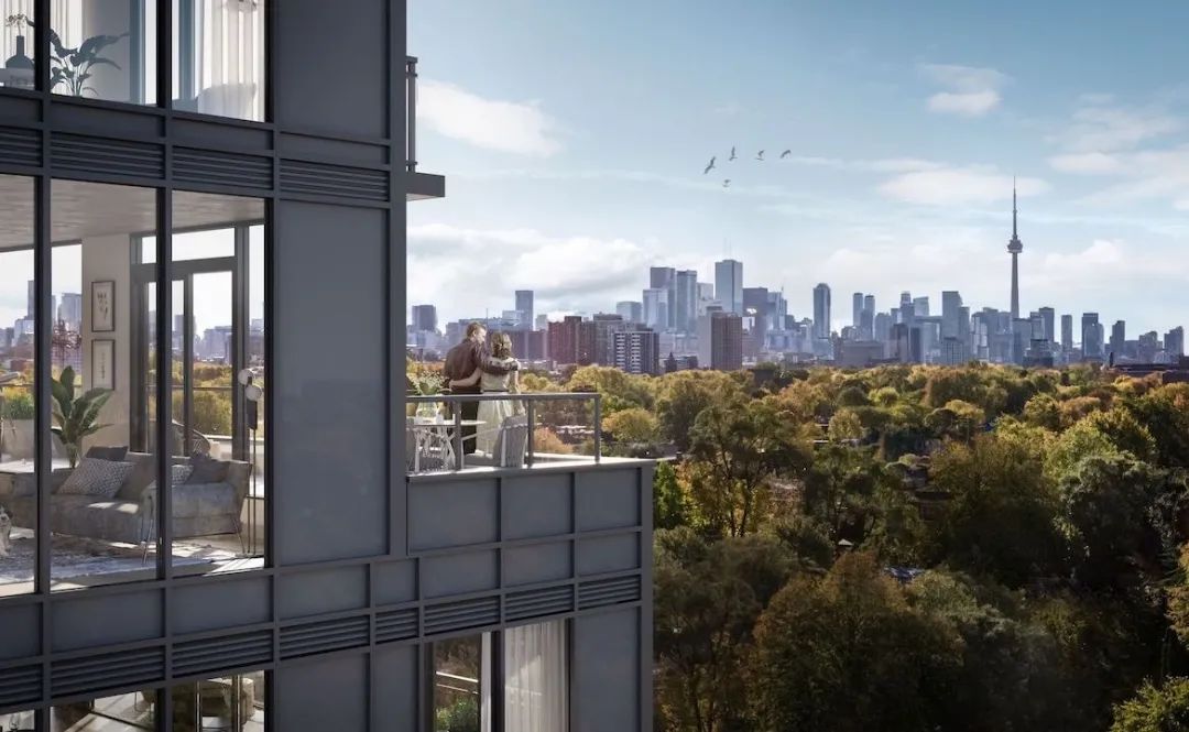 Oscar周围环绕着绿树成荫的安静公园,这为其提供了充足的天然绿色空间。同时,远处隐约可见的Casa Loma城堡,在视野中形成了一个风景如画的背景,为繁华的都市渲染了学院派的历史氛围。