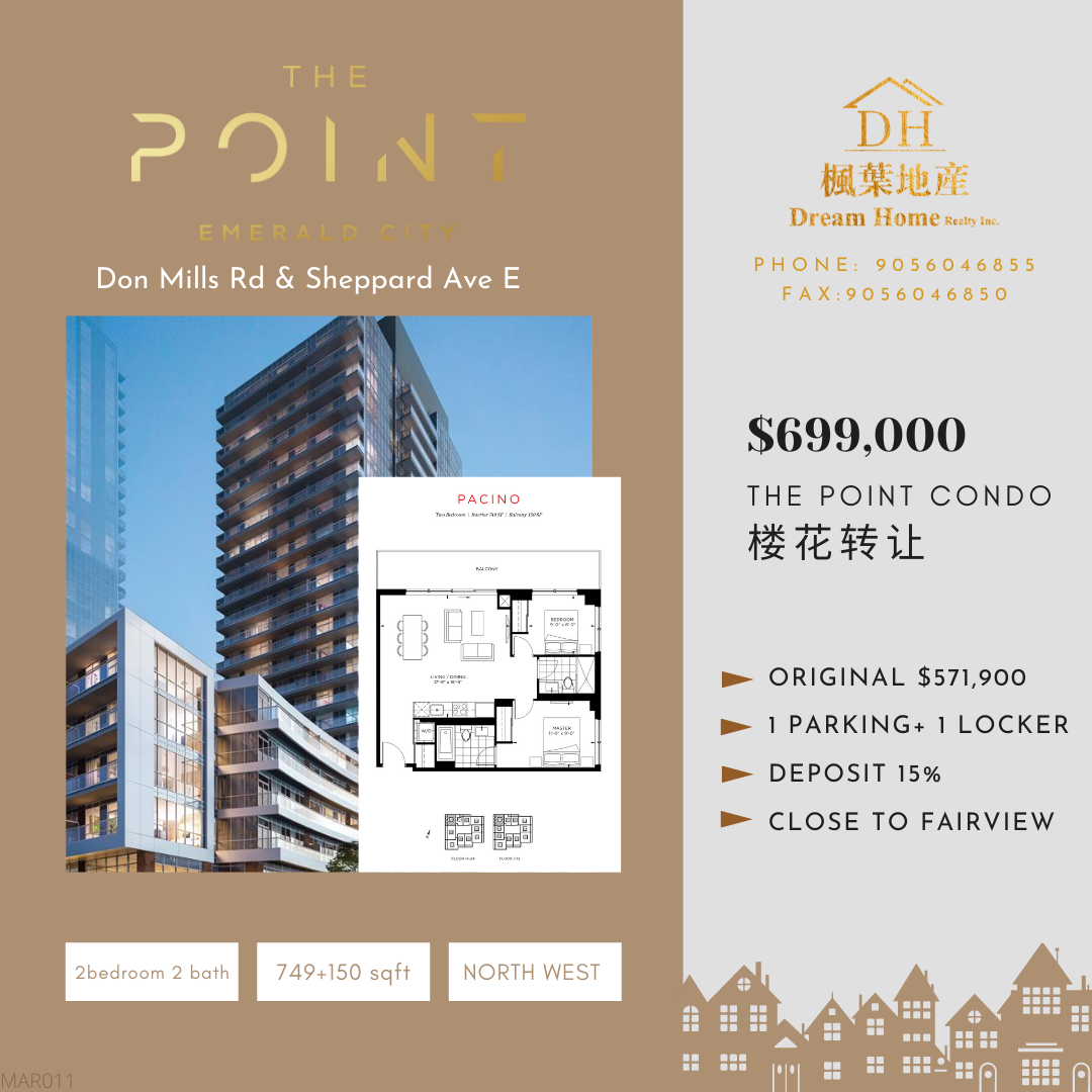 位于Don Mills Rd & Sheppard Ave E绝佳地理位置,朝向西北;