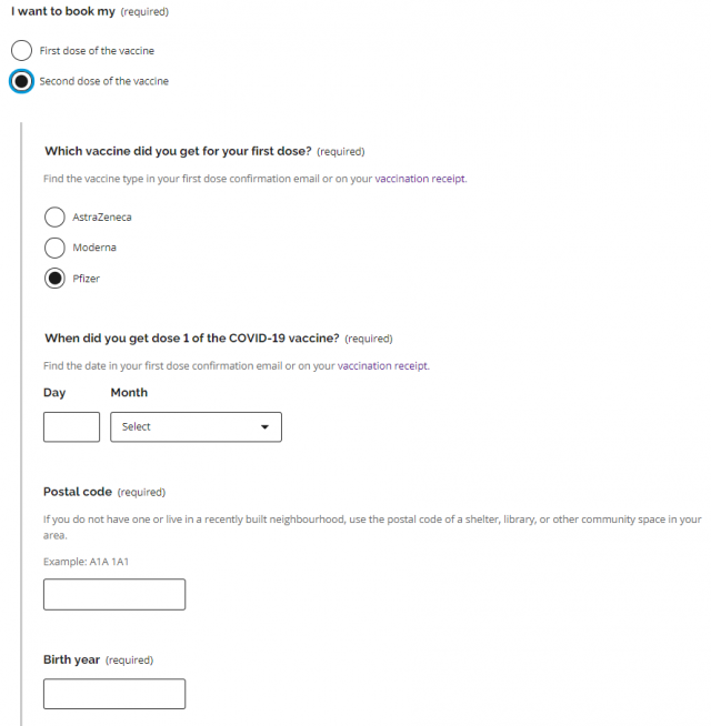 1、进入安省政府官网的疫苗预约页面:https://covid-19.ontario.ca/book-vaccine/ 进行疫苗预约,按要求填写一些基本信息: