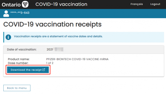 安省政府官网预约疫苗的页面里,有给大家提供一种疫苗接种凭证的下载方法。通过这种方式下载的凭证,可带有安省政府特制的水印,可信度看似高了不少,如下图所示:
