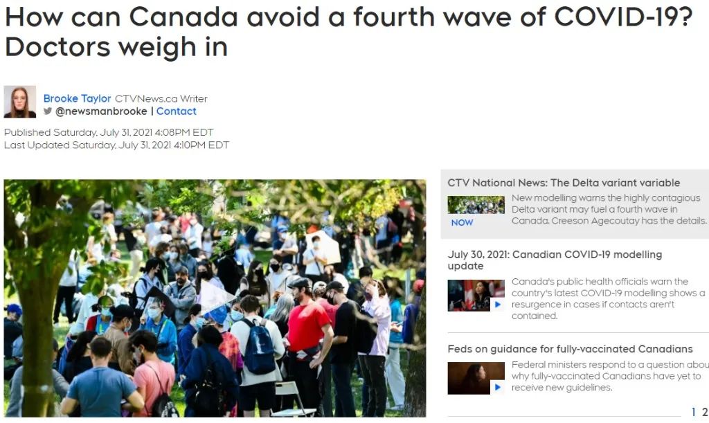 加拿大首席公共卫生官谭咏诗(Theresa Tam)警告,最新全国模型数据显示,加拿大已开始进入由Delta变种病毒引发的第四波疫情,疫情的严重程度将取决于国民完全接种疫苗的比率,以及解封的节奏和范围。