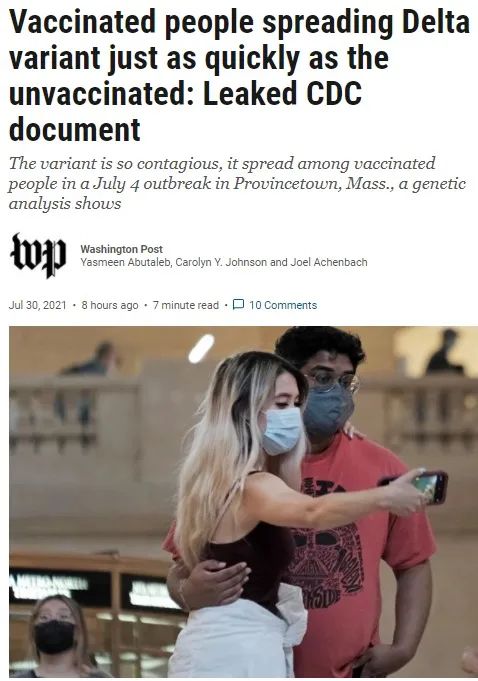 而根据一份泄露的美国CDC内部文件,新冠Delta 变体似乎更容易引起更严重的疾病,且接种疫苗者与未接种疫苗者一样具备病毒传播能力;官员们必须意识到“抗疫战已经改变”。