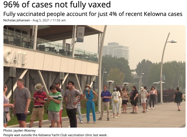 不过,有个比较激励人心的消息,卑诗省奥肯那根中部最近激增的病例中,只有4%是完全接种疫苗的人。