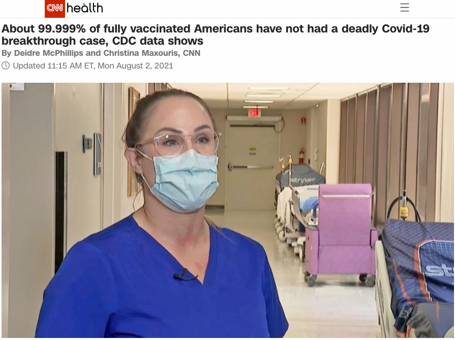 截至 7 月 26 日,CDC 报告了 6,587 例 Covid-19 突破性病例,包括 6,239 例住院治疗和 1,263 例死亡。而当时,美国有超过1.63亿人全面接种疫苗。