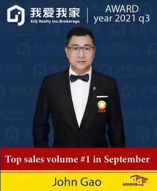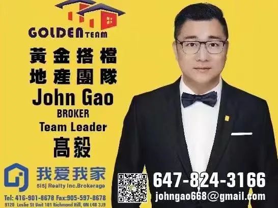 John Gao:黄金搭档地产团队Team Leader ,从事地产行业近10年,秉承“诚信至上,客户为先”的初心,John服务于大多伦多地区多年,靠着广大客户的口碑相传,近年相继斩获加中地产总商会CCRPA的Top Producer大奖,HomeLife主席大奖,我爱我家地产2020年listing冠军奖等。John荣获“我爱我家”2021年9月销量第一名。
