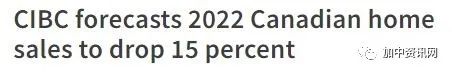 总体而言,相对于2021年房市的高水平,CIBC预计在2022年房屋销量将下降15%。