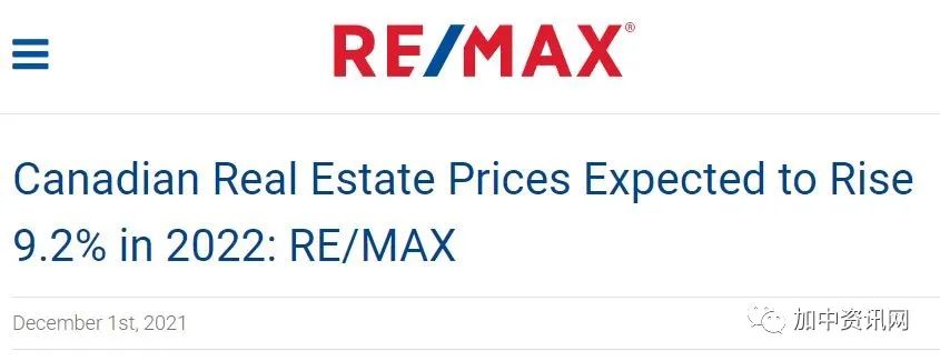 地产公司RE/MAX也在12月份发布了2022年房市预测,同样也认为住房供应短缺问题会持续下去,并为房价带来上涨压力。