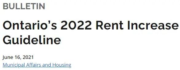 最近,安省宣布了最新的2022年房租上涨通知:从2022年1月1日开始到年底,提高了租金最大涨幅的准则。