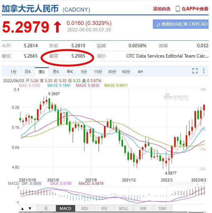 最近加元强势反弹,再加上央行加息的影响,直接使汇率狂飙至最近一年来的最高点,兑人民币汇率涨至5.30。