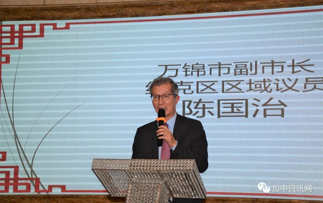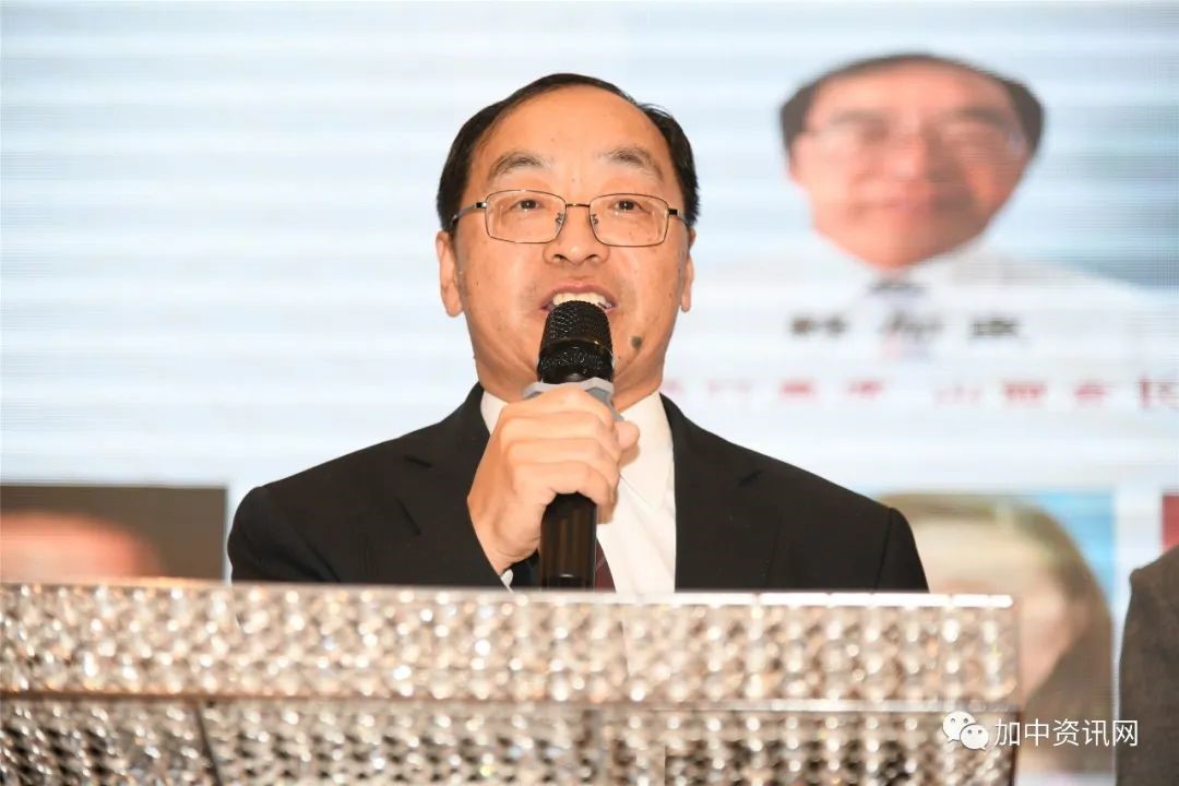 加拿大华人同乡总会执行主席韩加良在致辞中:“首先请允许我代表加拿大华人同乡会联合总会对你们在百忙当中参加我们今天的年会表示衷心的感谢和热烈的欢迎!