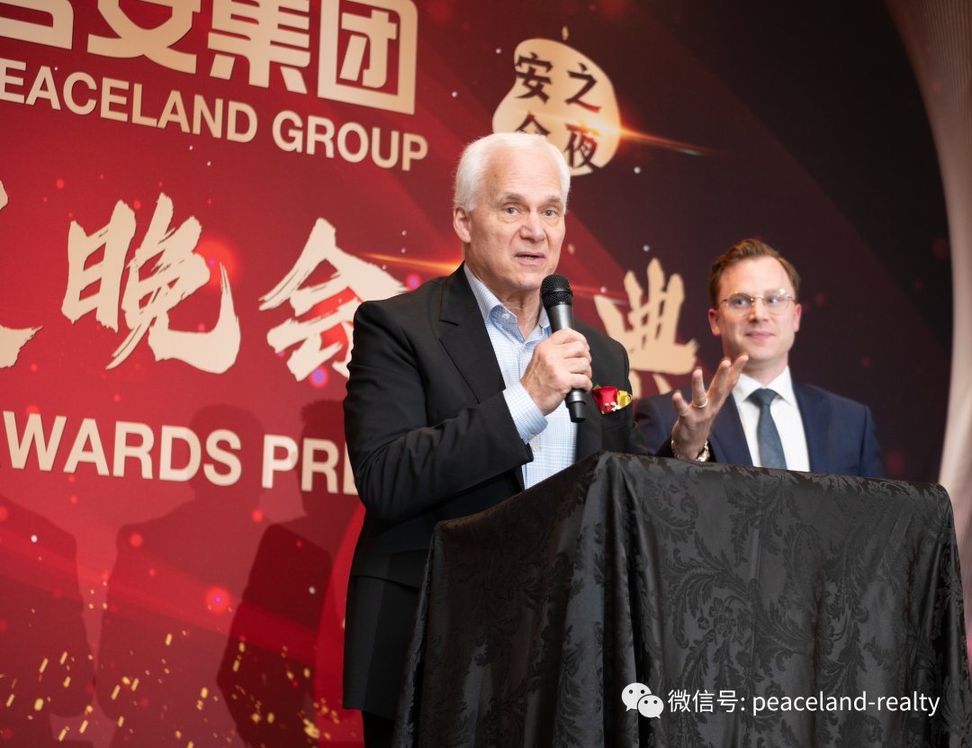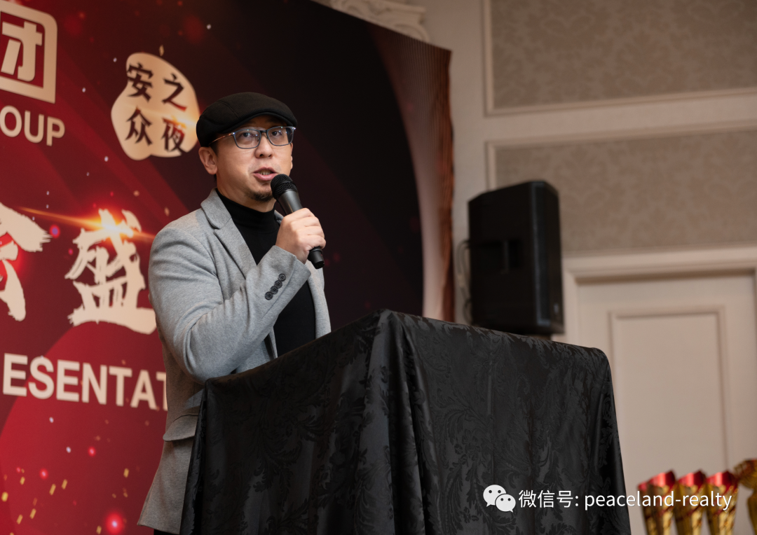 君安地产集团总裁杨超(David Young)首先发表讲话,感谢在这风雪交加的天气里,依然坚持到场与君安共同庆祝君安集团2022年度颁奖典礼的各位合作伙伴、员工与家属们。这是自COVID-19以来,第一次线下颁奖晚宴。