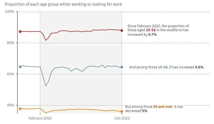 Lange说,在许多方面,紧张的就业市场与2020年3月之前的预期相似,如图片所示,大流行似乎已经促使一些老年人提前离职。