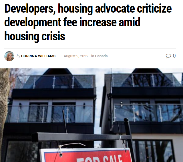 目前,开发商已经面临着高昂的建筑成本和技术劳工的短缺。多伦多市的包容性分区政策,要求开发商在公交站附近的新项目中提供可负担住房单元,这已经迫使开发商通过提高剩余住房单元的价格来补贴这些可负担单元。