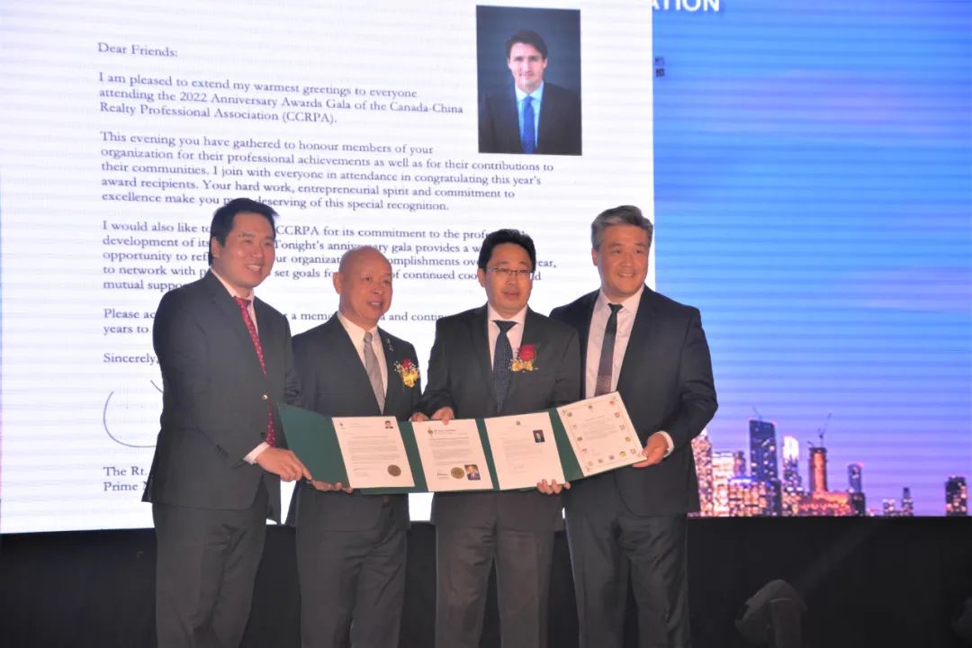 晚会还隆重邀请到地产学院及地产协会嘉宾以及商会顾问委员会代表,他们是:加拿大地产学院前主席 Winson Chan,加拿大地产学院 (多伦多分院) 主席 Fabio Fiumana,国际商业地产协会(加拿大中区)主席、加拿大地产学院(多伦多分院)前主席 Manjit Saggu,加拿大地产学院 (多伦多分院) 前主席加拿大地产学院理事John Bowen, 加拿大地产学院前主席 Johnmark Roberts。顾问委员会代表为: 大律师、加拿大华人领袖、全加华人联合全国荣誉主席陈丙丁,皇家银行高级商业市场副总裁彭清湘,中关村股权投资协会主席王少杰。此外,CCRPA加西会员代表 Luxmore Realty (温哥华龙美地产) – CEO Jason Liu 刘毅先生也到会表示祝贺。