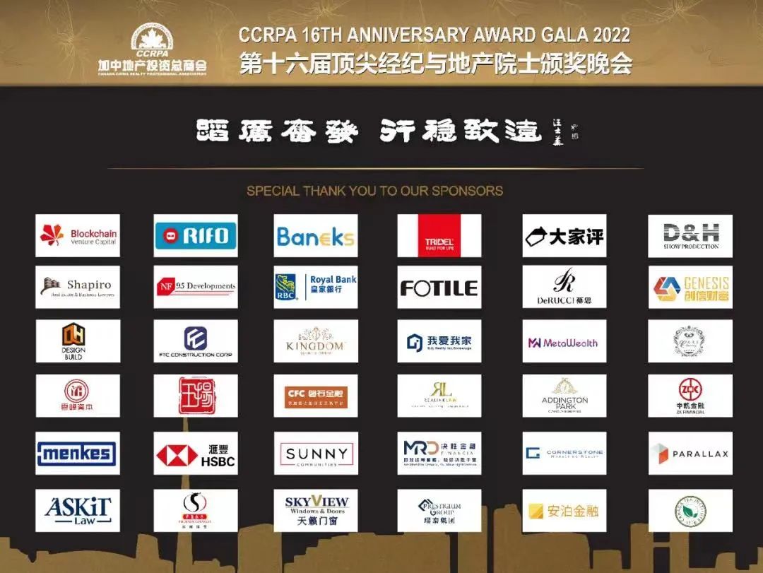 加中地产投资总商会 CCRPA 慈善颁奖晚会于5月29日在多伦多成功举办。作为加拿大华语社区最重要,最有影响力的活动之一,本次“地产界奥斯卡晚会”可谓精英荟萃,群贤毕至。来自数百家地产及相关公司的地产专业人士欢聚一堂,共同回顾过去,展望未来。