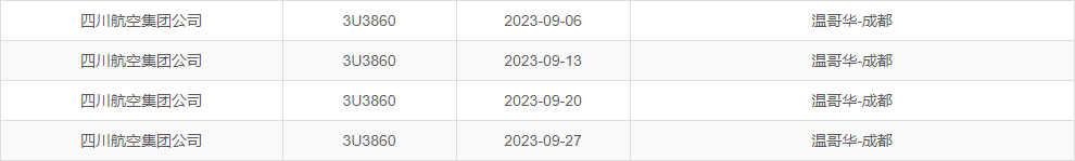 该航线由四川航空执飞,机型为空客A350(Airbus A350),每周四班。