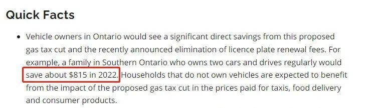 安省的车主将从汽油和燃油税减免以及此前宣布取消牌照更新费中直接节省大量资金。到2022年底,每个家庭平均可节省约$815加元。