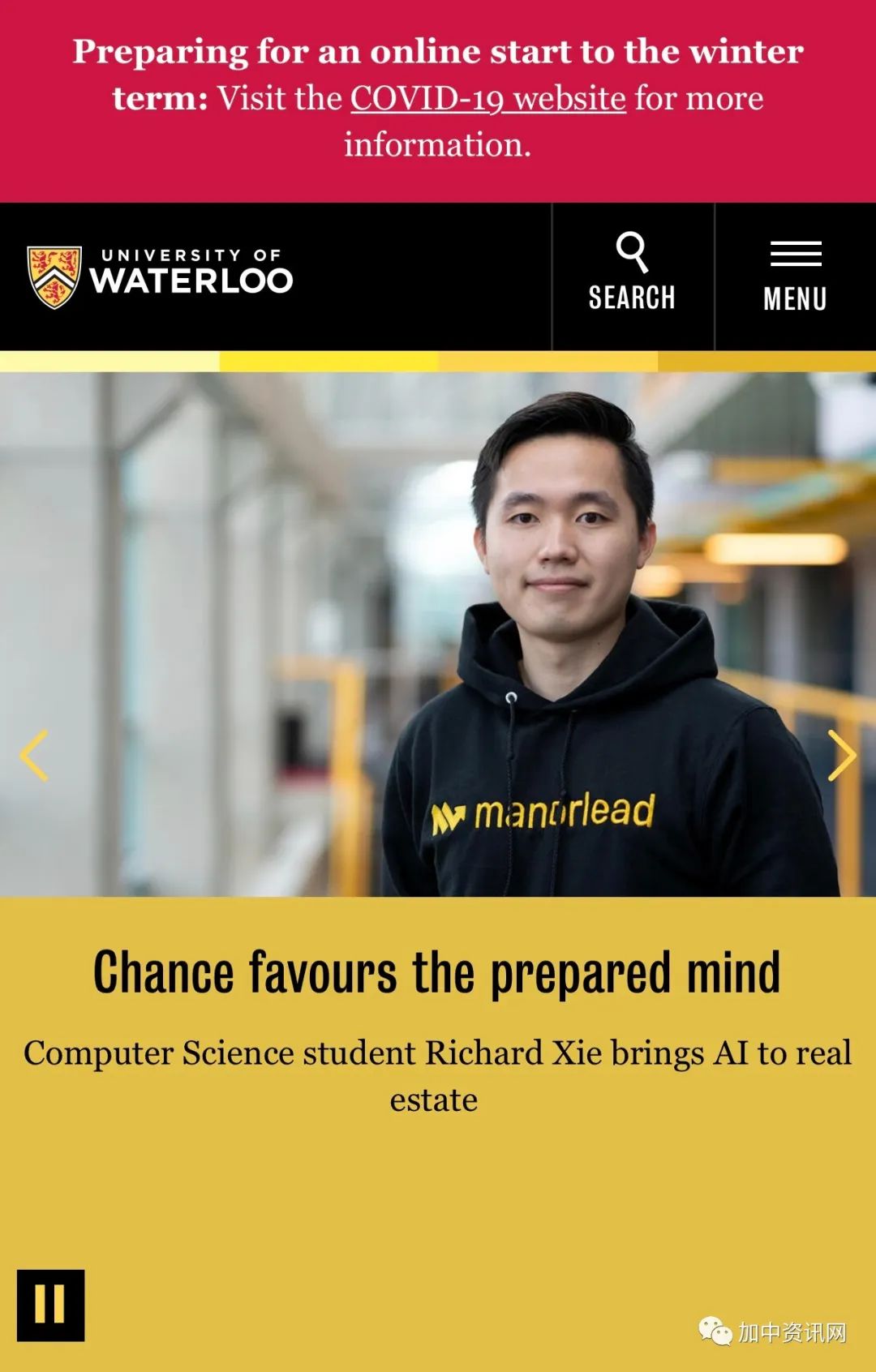 以优等生身份毕业于加拿大第一王牌专业滑铁卢大学计算机科学CS,创业项目被滑大官网、世界权威财经通讯社彭博社、美国雅虎财经和中国经济网等专题报道。