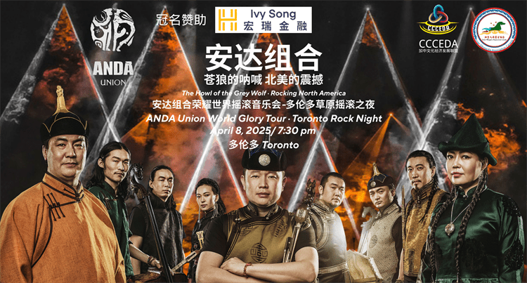 2025年4月8日晚由加中文化经济发展联盟(CCCEDA)主办,加拿大内蒙古协会、内蒙古总商会共同承办,宏瑞金融冠名赞助的“苍狼的呐喊,北美的震撼”,安达组合荣耀世界摇滚音乐会-多伦多草原摇滚之夜演唱会在万锦市万民剧院完美收官,全场爆满,盛况空前,引起了巨大轰动!