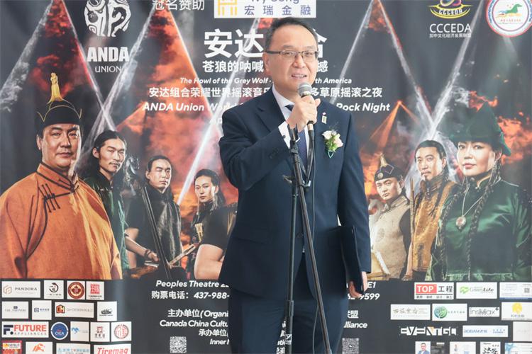 驻多伦多总领馆卞周洲副总领事亲临现场,代表罗伟东总领事向安达组合荣耀世界摇滚音乐会的举办致以热烈祝贺!