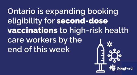 省府为方便民众接种,已将辉瑞和莫德纳疫苗发放至重灾区内药店。目前,多伦多和皮尔区内有近80家药店为满18岁者提供辉瑞疫苗,另外杜林区、汉密尔顿、渥太华、Windsor-Essex和约克区有多达60家药店为满18岁者提供莫德纳疫苗。省府将在五月把疫苗发放至更多药店。