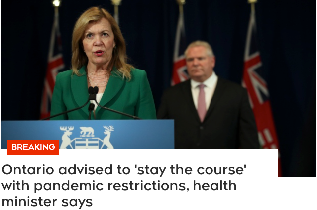 安省卫生厅长叶丽雅(Christine Elliott)今天(5月10日)表示,第三波高峰来的下滑趋势还不足以撤消限制措施,安省要看到新增病例数和ICU入院率的“显著下降”,才能解除居家令。