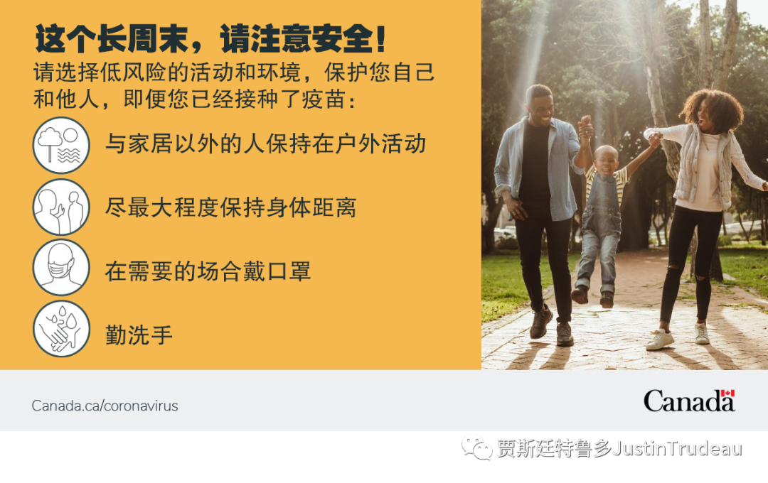 安全地欢庆这个五月的长周末! 请遵循当地公共卫生官员的建议,以帮助减缓COVID-19的传播。加拿大,让我们再接再厉,保持当前的努力!