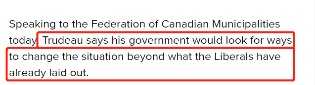不过,特鲁多同时也指出,仅靠联邦政府的力量还不能完全扭转现在的形势,降低住房成本也需要各地政府的协助。