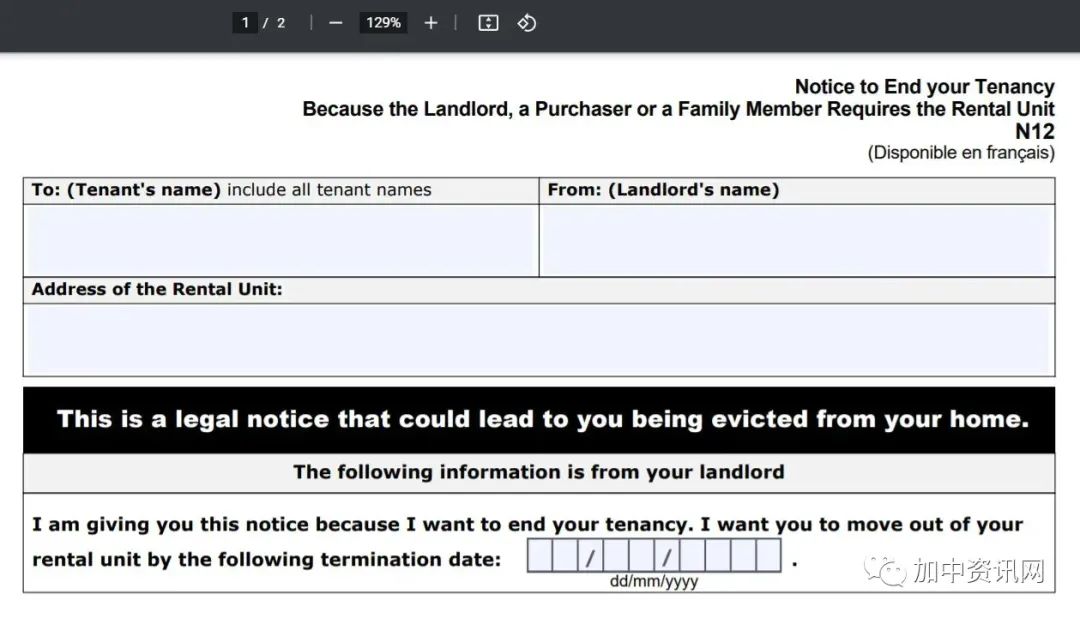 N12表格:该表格适用于房东要收回房子给自己或者自己的亲属使用,N12表格需要房东提前60天发送终止租约通知。