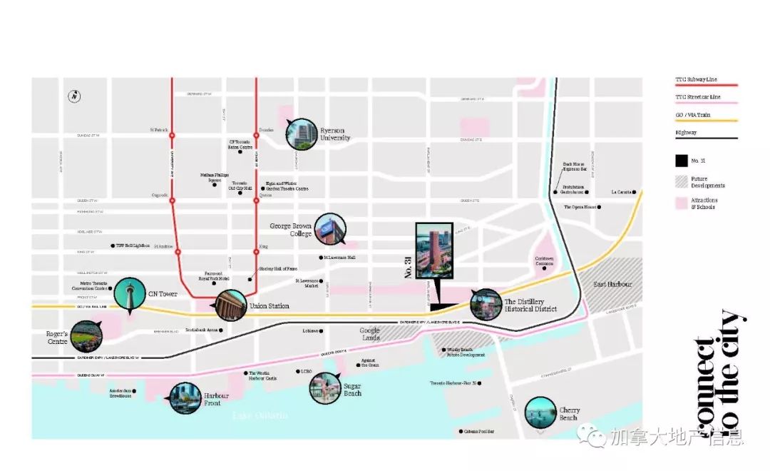 由著名开发商Lanterra Developments开发的No.31 Condos将坐落于市中心酿酒区核心地段,距离Google科技城200米,步行仅需3分钟。